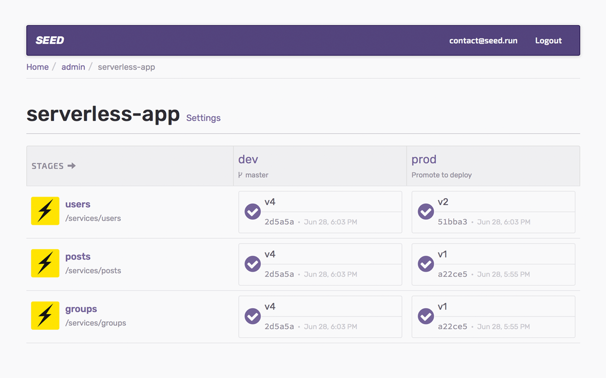 Seed manages pipelines, configures environments, and monitors deployments for Serverless Framework projects.